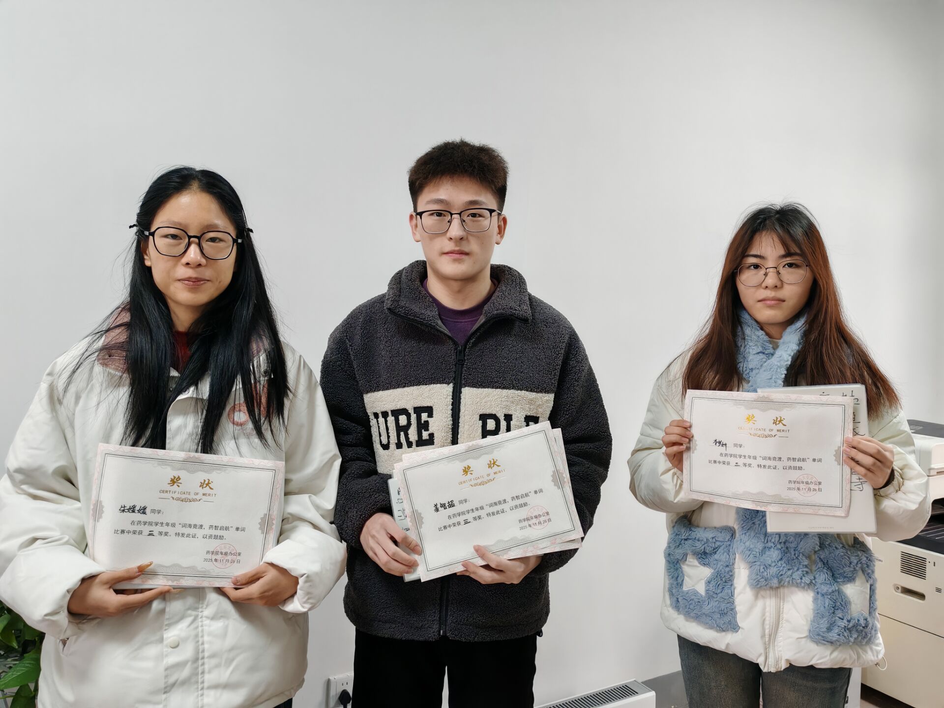 在比赛现场30分钟的答题过程中,参赛同学全神贯注、沉着应答。监考人员严格履职,确保比赛秩序井然、公平公正,为营造积极向上的学习氛围提供了有力保障。经过激烈角逐与公正评审,吴可、马凌睿两位同学荣获一等奖;潘婷等四人获二等奖;王紫旭等六人获三等奖。