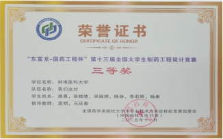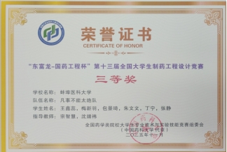 11月28日-30日,由全国药学类院校大学生专业技术与实验技能竞赛组委会主办,东富龙科技集团股份有限公司和中国医药集团联合工程有限公司协办,上海工程技术大学承办的“东富龙—国药工程杯”第十三届全国大学生制药工程设计竞赛全国总决赛在上海工程技术大学圆满落幕。我校学子荣获三等奖三项。
