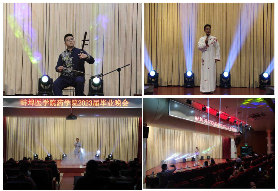 致辞结束后,晚会表演环节正式开始。既有充满活力的舞蹈,也有优美悦耳的歌曲、也有让人捧腹大笑的相声、还有展现国粹的二胡演奏和戏歌演唱,更有充满美好祝福的大合唱。各种节目精彩纷呈,给大家带来了一场饕餮盛宴。本次毕业晚会特邀了校团委肖宇阳老师和连俊杰老师为大家带来了精彩表演。其中,肖宇阳老师为大家带来了二胡独奏《赛马》,抑扬顿挫,在场师生无不陶醉其中,惊叹于肖宇阳老师娴熟的二胡演奏技术。连俊杰老师为大家献上了戏歌《沁园春·雪》,仿佛让大家置身于北国壮丽的雪景中,伟人的豪迈气魄展现的淋漓尽致。宋宜宁老师和李晓明老师分别演唱了《起风了》和《我们俩》,并与在场毕业生精彩互动,获得了在场师生们阵阵欢呼声。在各个节目之间还穿插了有奖知识竞答活动,同学们踊跃参与,积极回答。最后,全体师生留下了珍贵的合影,毕业晚会在一片欢歌笑语中也落下了帷幕。